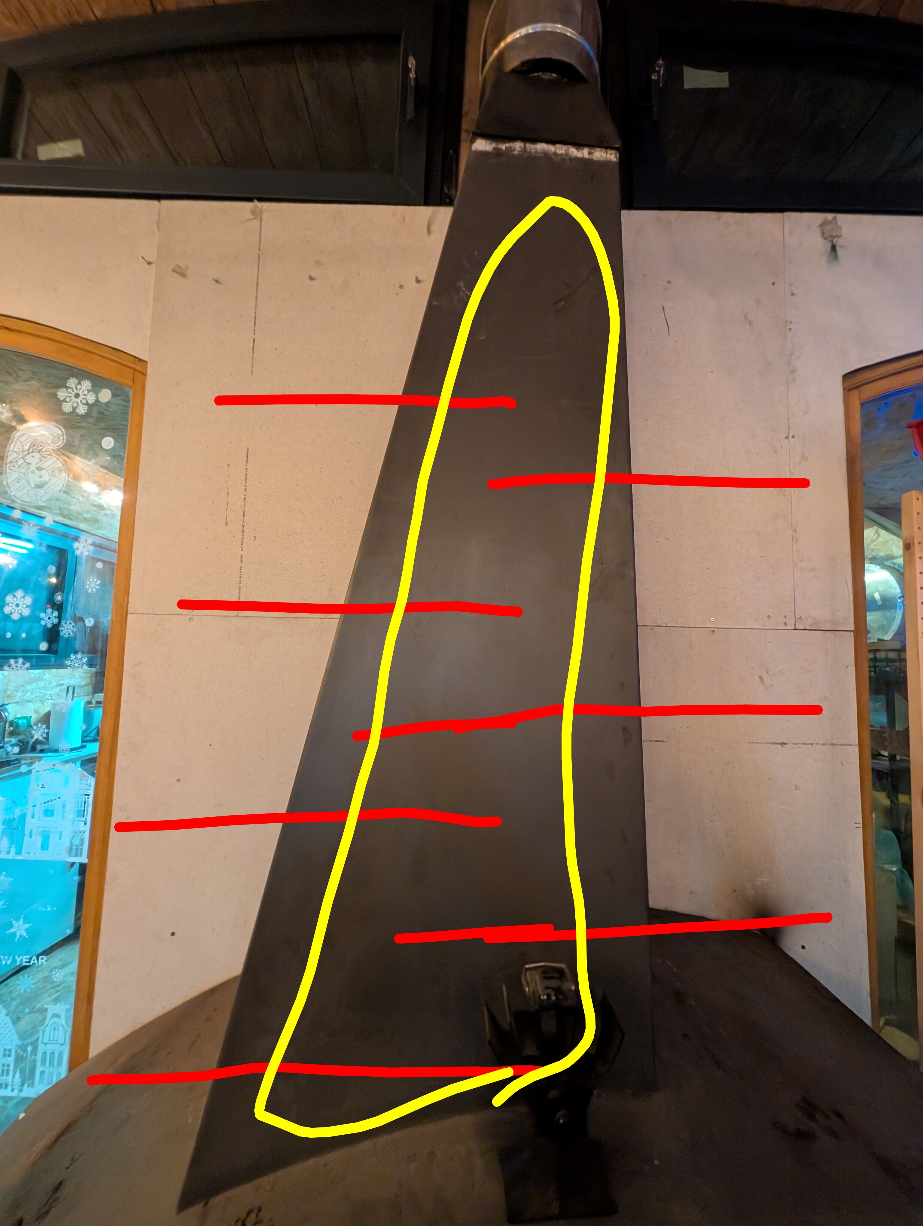 Mon idée c’est de créer une trappe dans le grand conduit et mettre de la tôle épaisse supportant des briques réfractaire, peut être que les tôles devrait sortir pour diffuser.