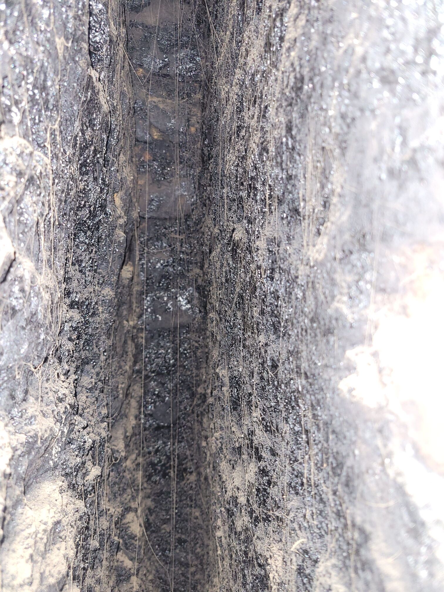 Les photos ont été prises à l’ouverture du conduit, j’ai depuis longuement gratté avec une canne de ramonage + piochage des parties accessibles depuis le trou et enlevé à peu près 40 litres de débris, mais il reste une bonne croute.
