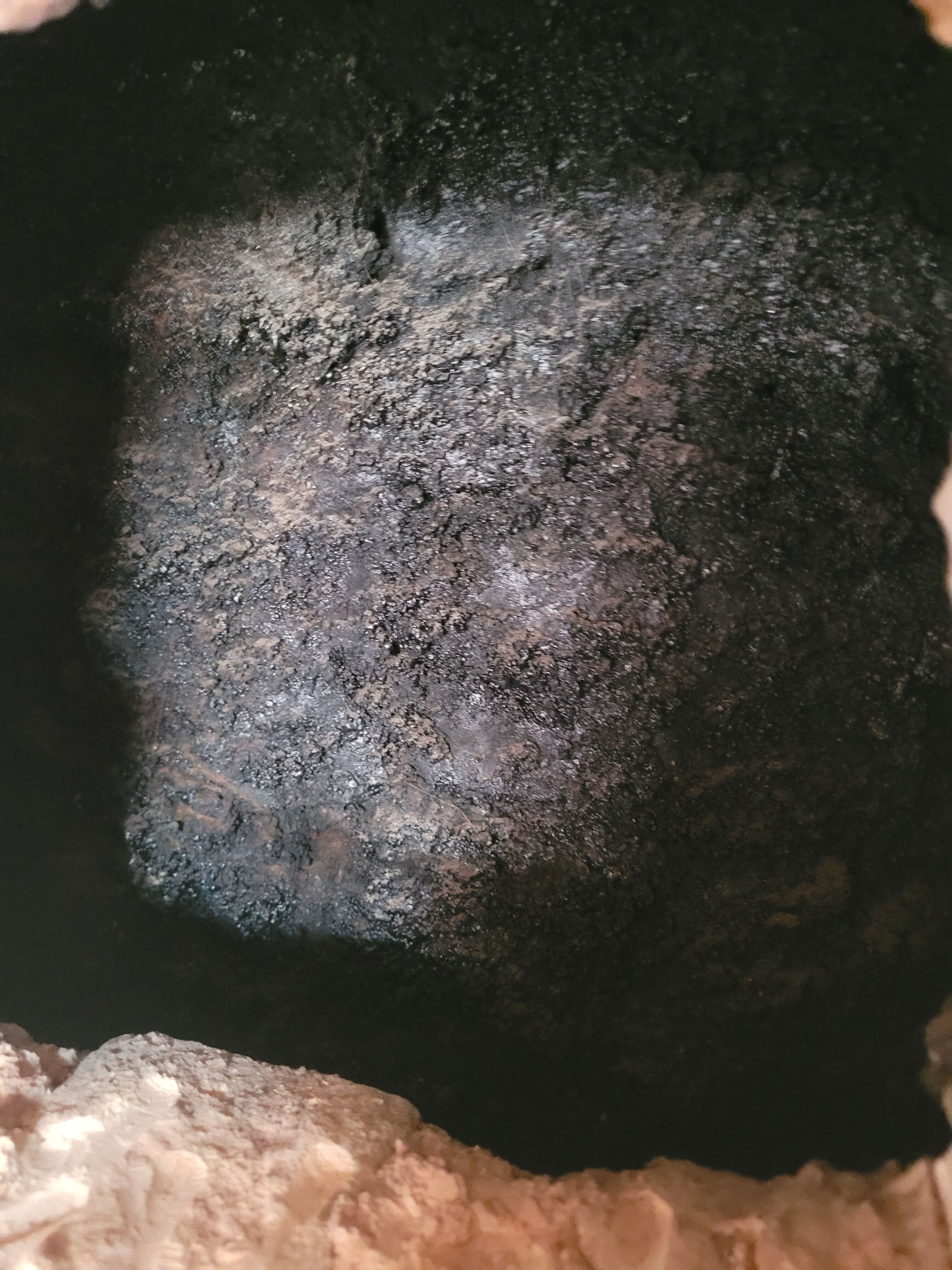 Pour ce faire j’ai fait une ouverture dans le conduit au niveau du grenier et me suis aperçu qu’il restait une bonne couche de bistre (il a pourtant été débistré en même temps que l’autre) jusqu’à 10-15mm sur les pierres enlevées du conduit.
