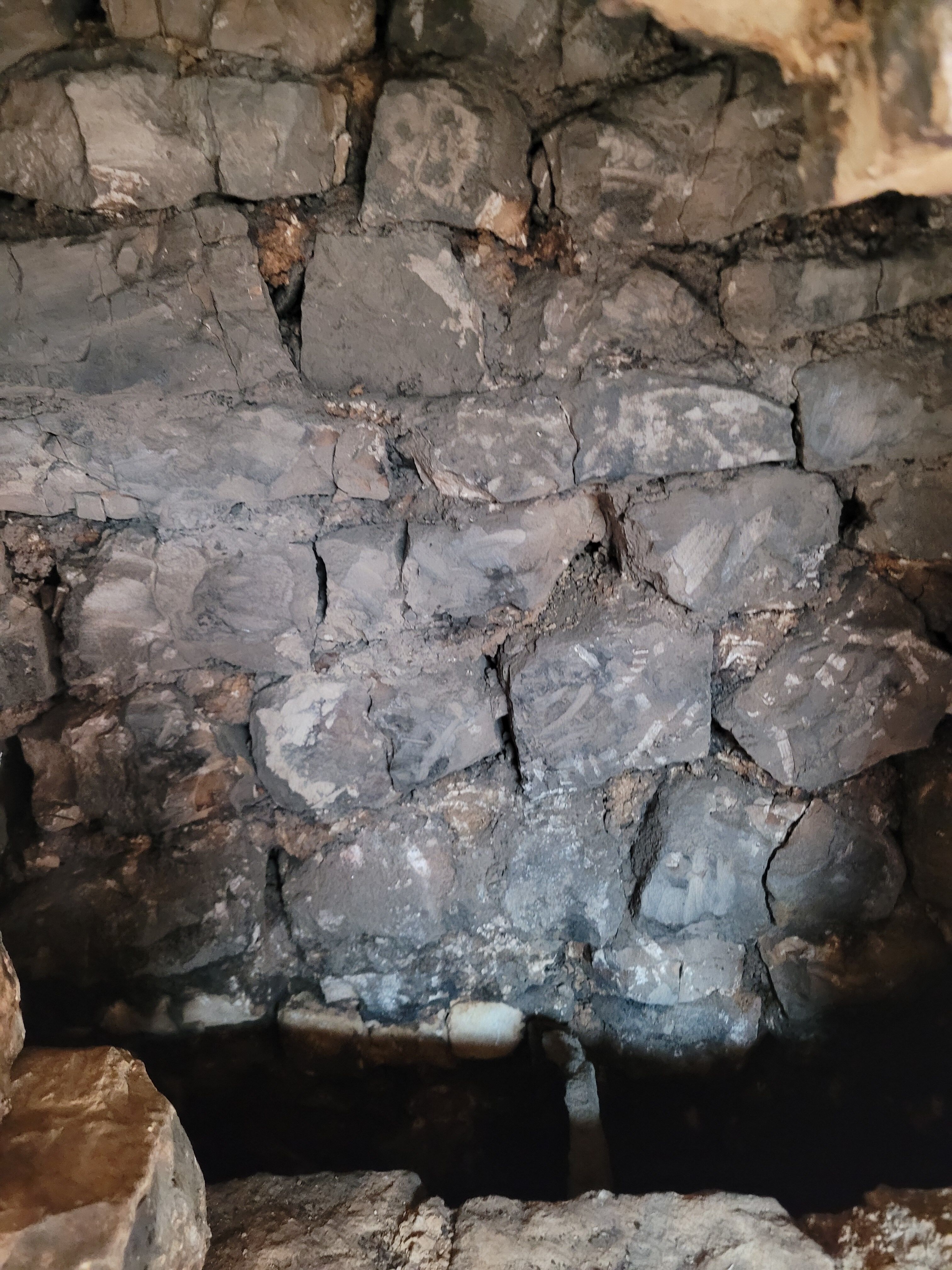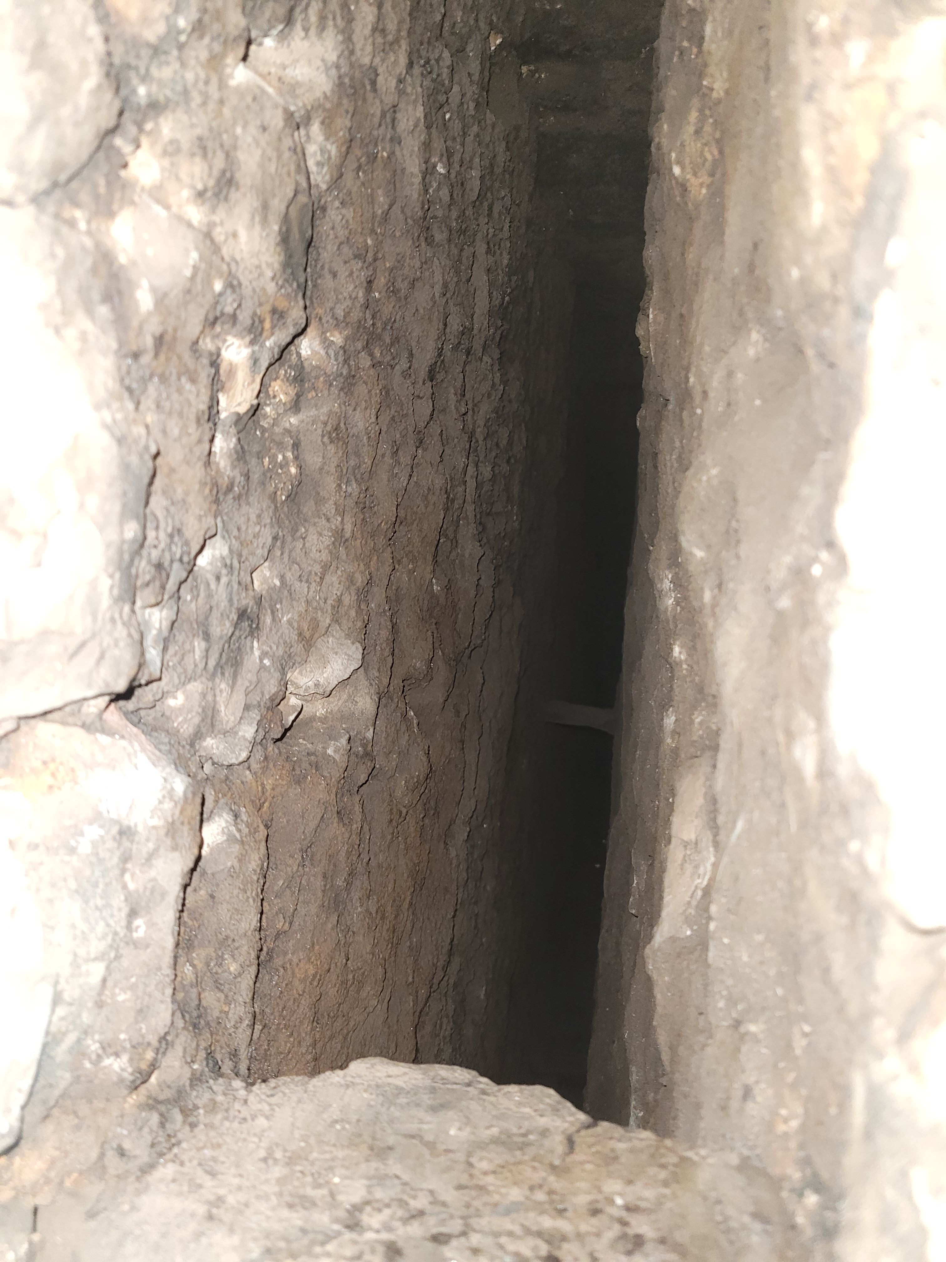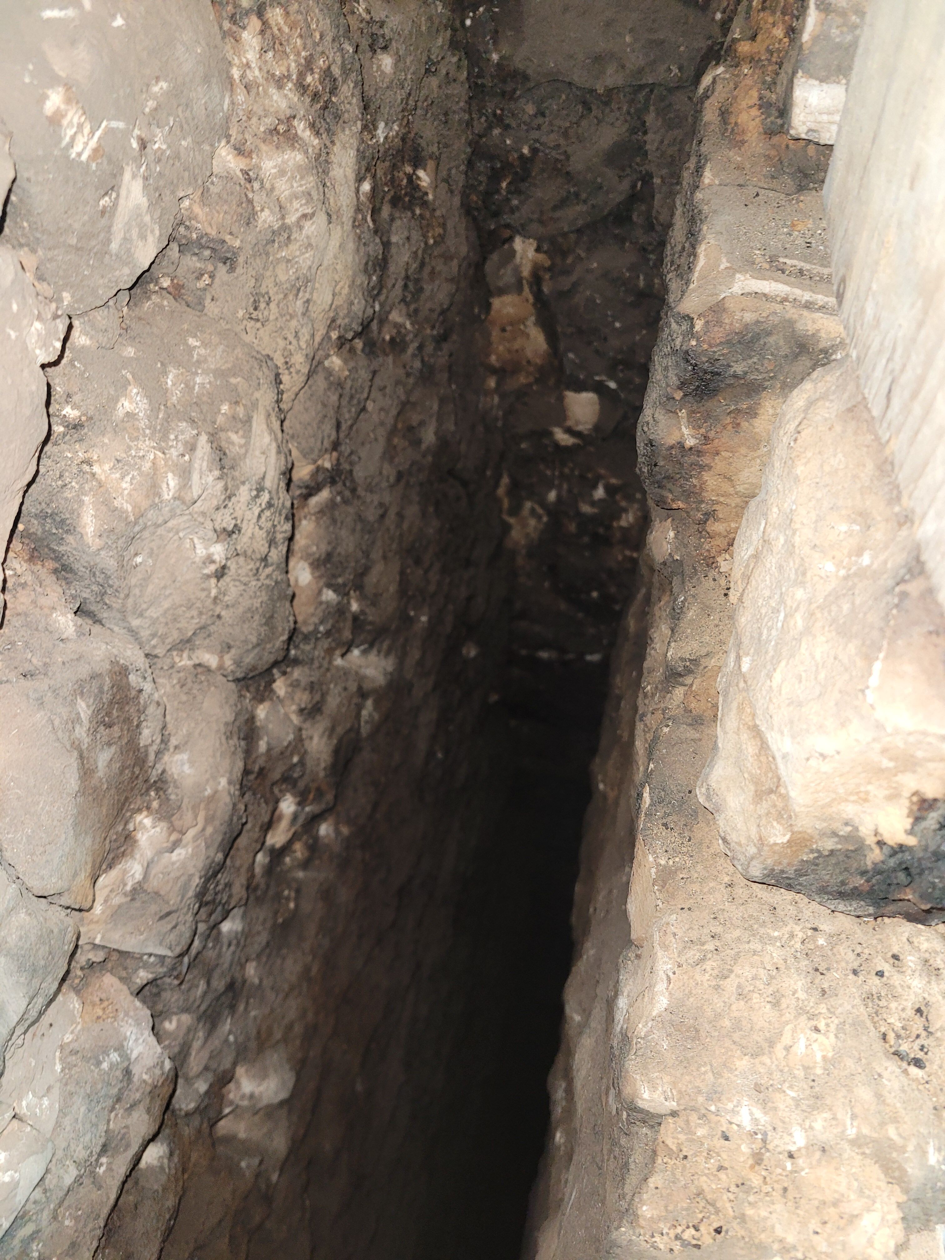 Le second va jusque 27 cm de l’autre côté, ce qui laisse 30 cm de moellons entre les deux conduits.