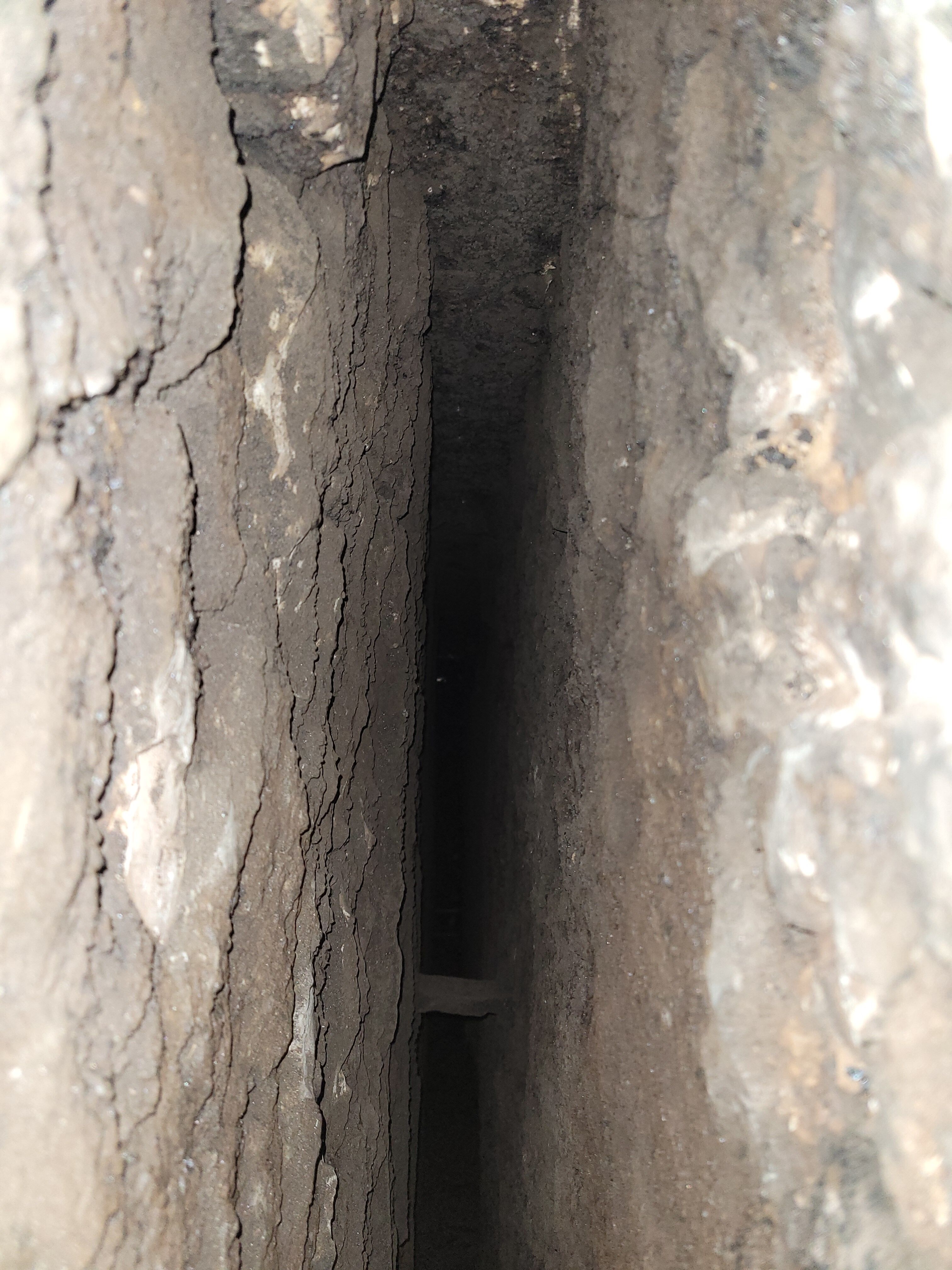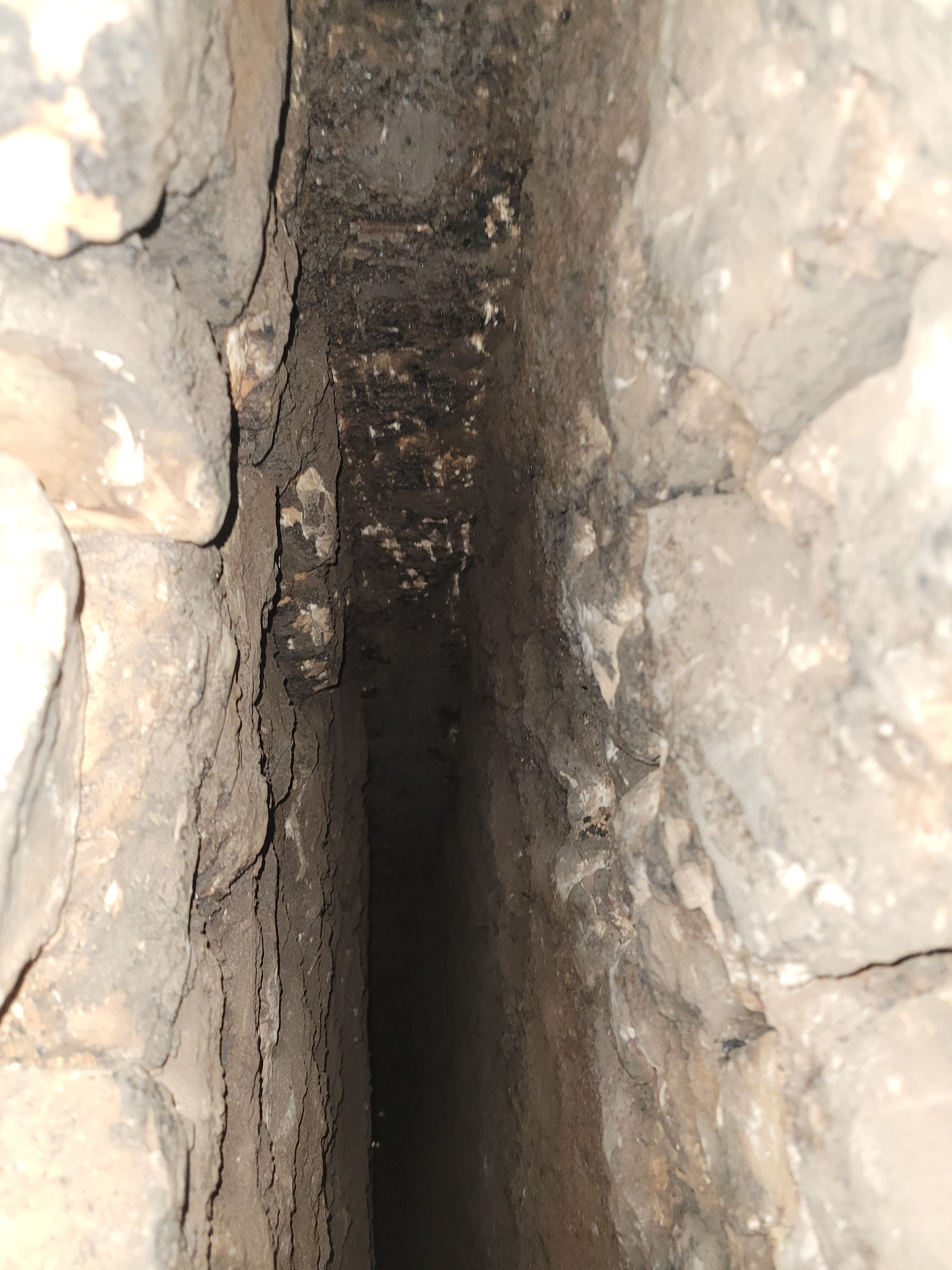 Les photos ont été prises à l’ouverture du conduit, j’ai depuis longuement gratté avec une canne de ramonage + piochage des parties accessibles depuis le trou et enlevé à peu près 40 litres de débris, mais il reste une bonne croute.
