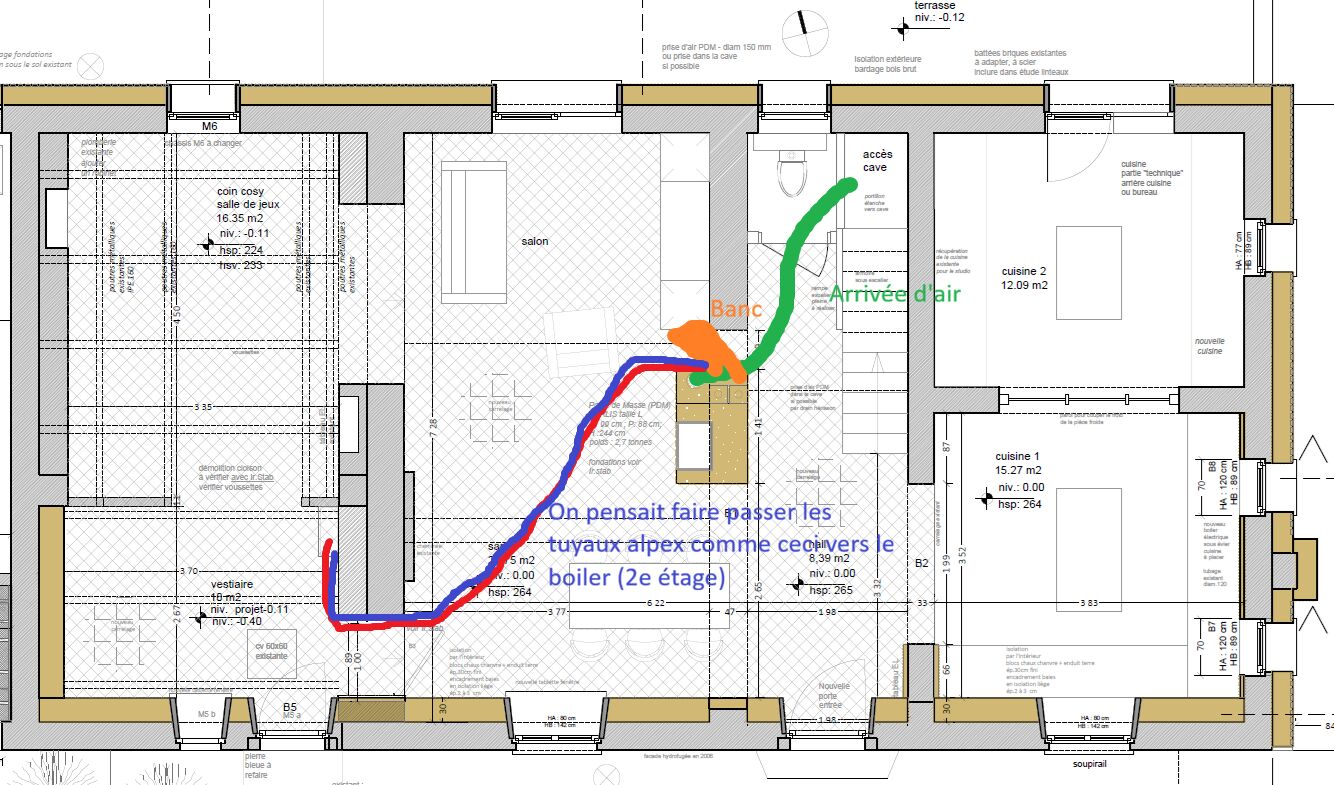 - Notre PDM est au centre de la pièce. Comment faire pour la sortie des tuyaux? Avez-vous trouver des solutions esthétiques? On pensait faire sortir les tuyaux sur un côté court du PDM.