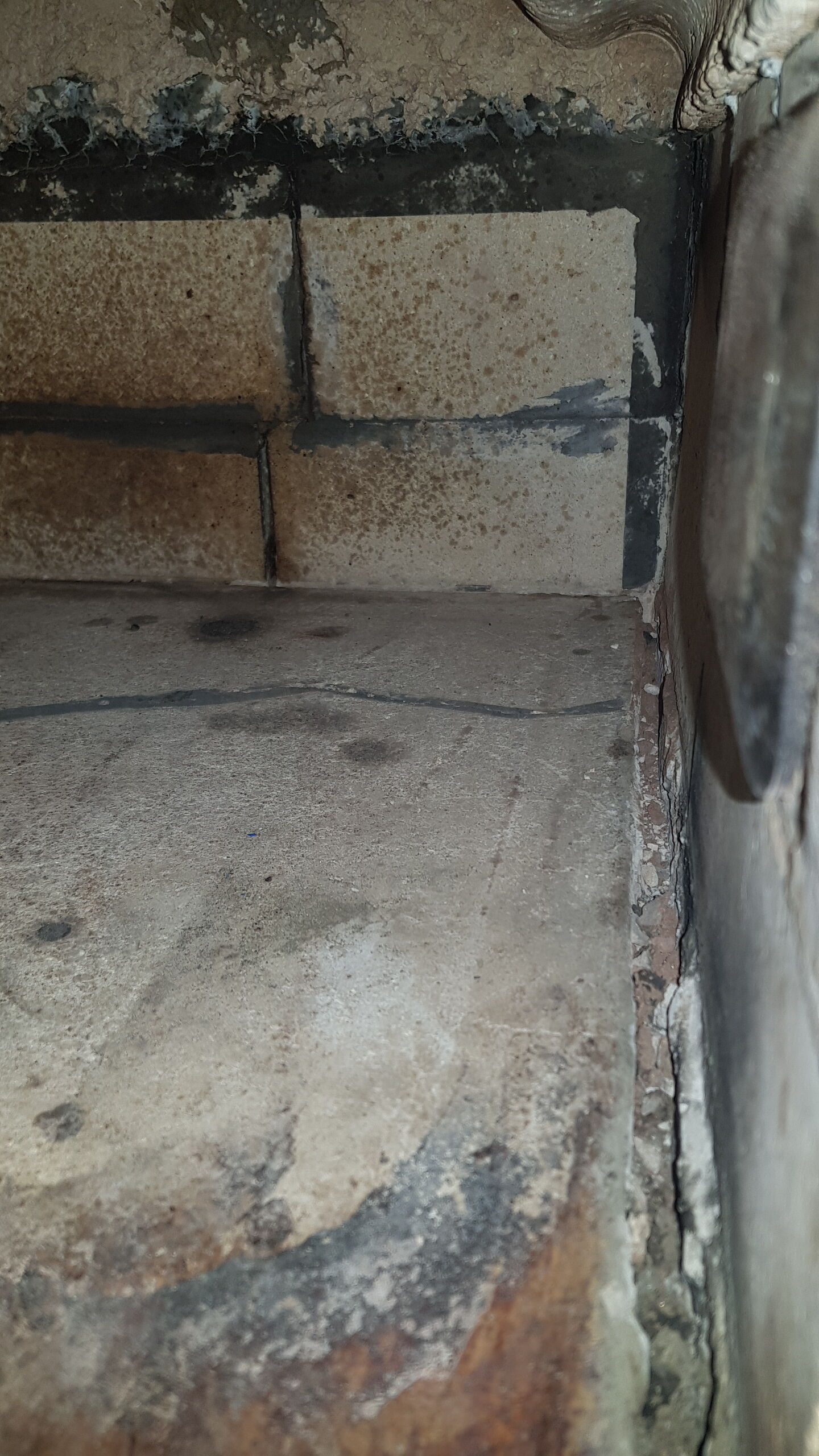 Mon PdM ayant été utilisé de manière un peu trop intensive a subit des dilatations/fissurations. Celles-de la surface seront cachées par la finition. Mais celle qui me pose question est celle du linteau, et plus généralement l’état du linteau qui me semble un peu usé par les flammes.